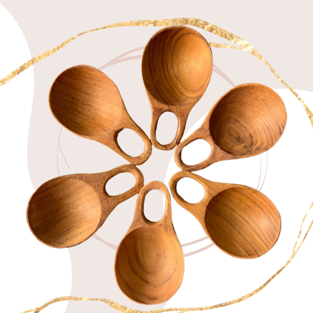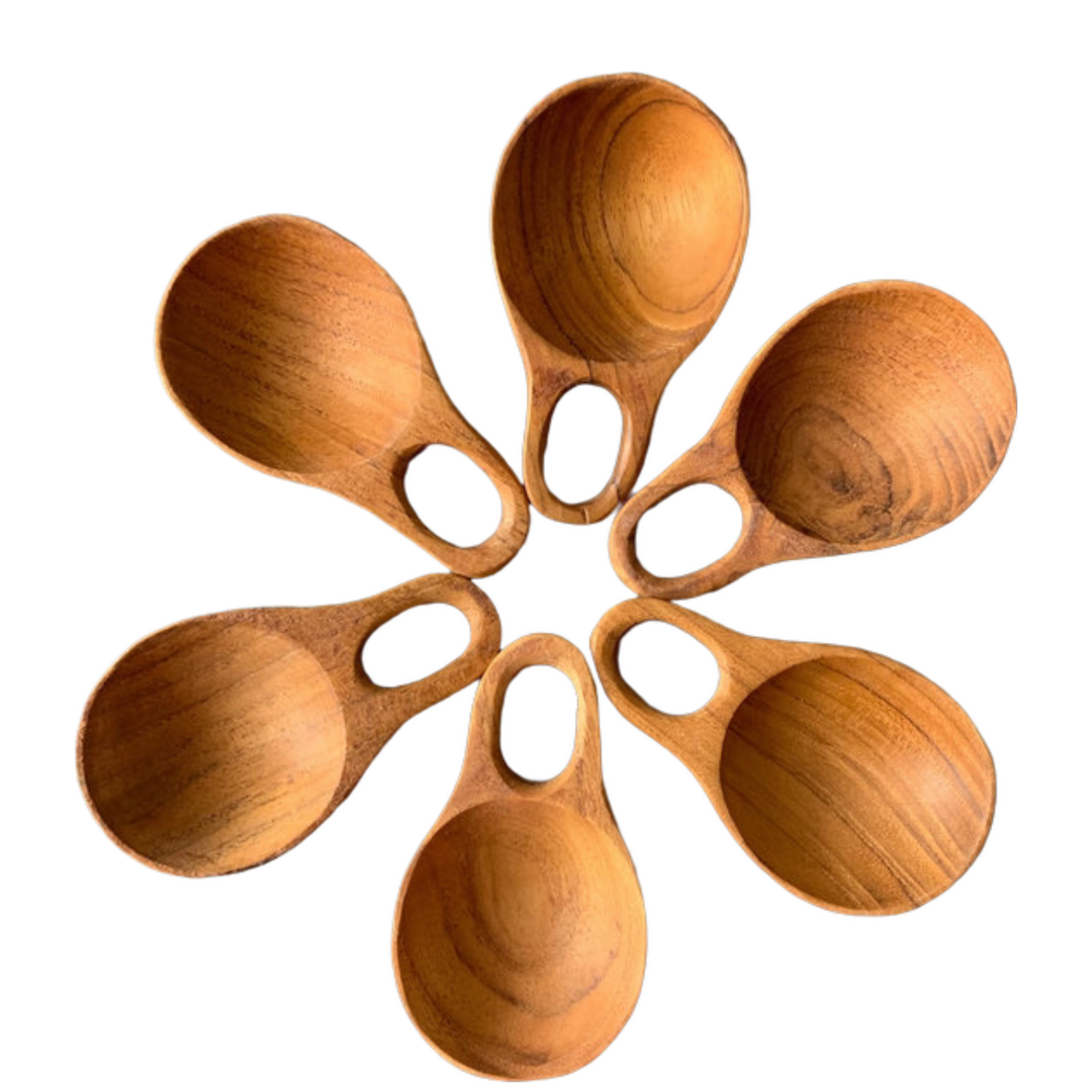 De leukste kleine schepjes, 8cm lang en 4,5cm breed, gemaakt van teakhout.