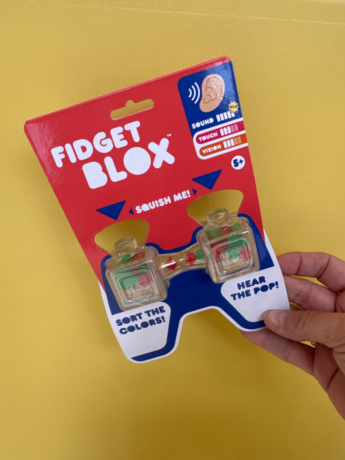 De Fidget Blox Sound is een blokje met een krap midden. Wanneer je de balletje van de ene naar de andere kant duwt zal dit zorgen voor een geluidje.