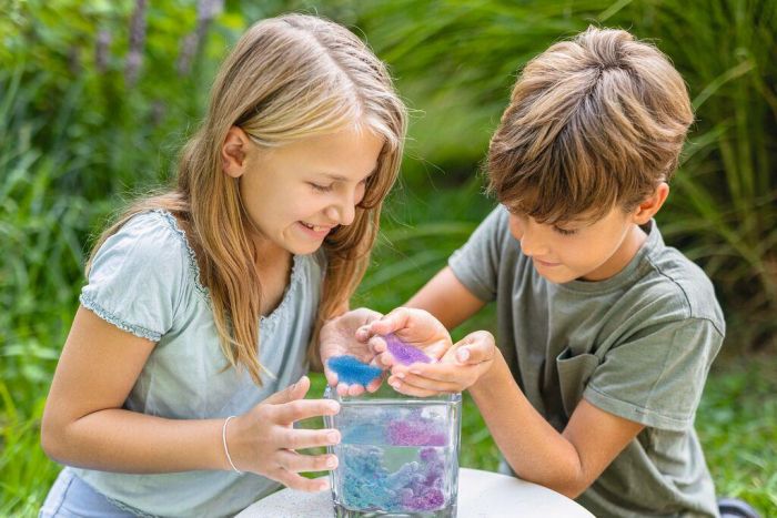 Met magisch hydrofoob zand maak je de meest futuristische vormen in water – en zodra je het eruit haalt, is het direct droog! Dit bijzondere zand is een geweldige manier om te experimenteren met natuurkundige principes en sensorisch spel, terwijl kinderen spelenderwijs ontdekken hoe afstoting van water werkt.