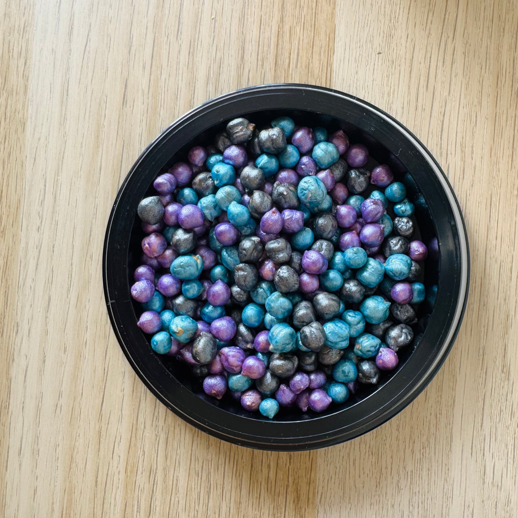 Deze unieke speelparels, gemaakt van kikkererwten en gekleurd met kindvriendelijke verf, zijn het ideale materiaal voor zintuigelijk en fantasierijk spel.