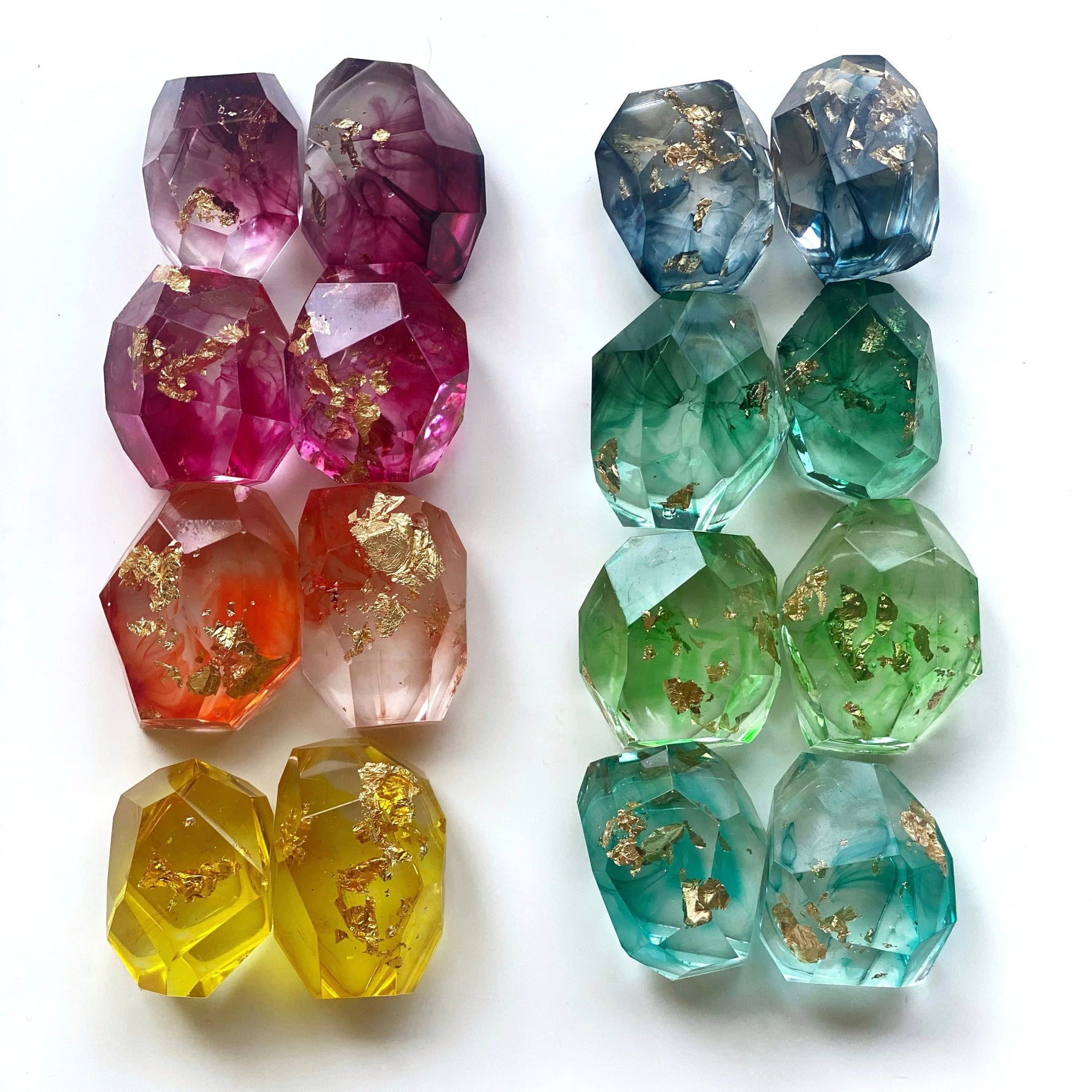 Let Op: Elke set harsedelstenen is uniek. De kleuren kunnen verschillen, aangezien hars een natuurproduct is. Deze variaties maken elke edelsteen speciaal en uniek.