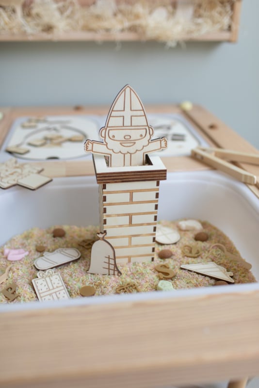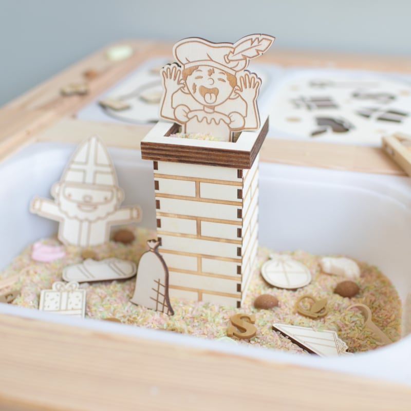 Speelbak of speeltafel: Vul de schoorsteen met rijst, kikkererwten, pepernoten of ander speelmateriaal.