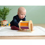 Dit interactieve speelgoed stimuleert oorzaak-gevolg denken terwijl het kind de trommel zelf laat draaien en geluiden produceert.