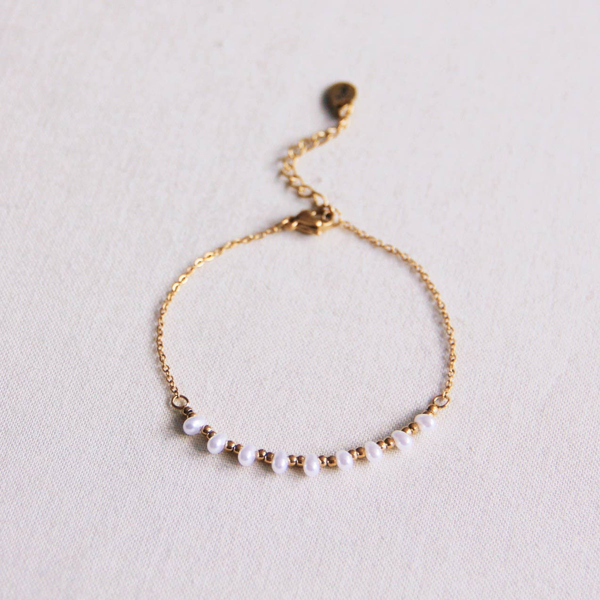 Fijne roestvrijstalen armband met miniparels en kraaltjes