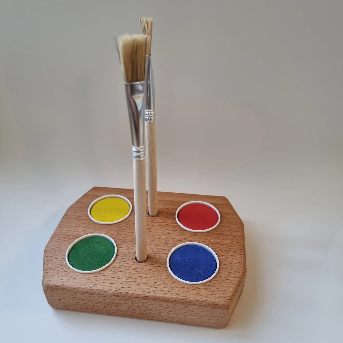 Elke waterverf houder is met de hand gemaakt van massief beukenhout. De unieke houtnerven zullen per stuk verschillen. Wij geloven dat dit de ware schoonheid en het karakter van het natuurlijk hout laat zien.  Elk waterverf houder is afgewerkt met een hard wax waardoor je de houder makkelijk met een natte doek kan schoonmaken.