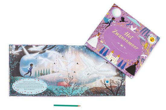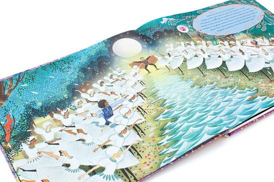 Druk op de noot op elke bladzijde om het verhaal tot leven te laten komen met muziek van Tsjaikovski's Het Zwanenmeer.