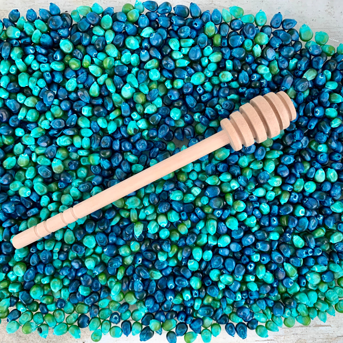Grote honinglepel. Om mee te roeren door de rijst, om mee te trommelen op een bakje, of gewoon op de grond.
