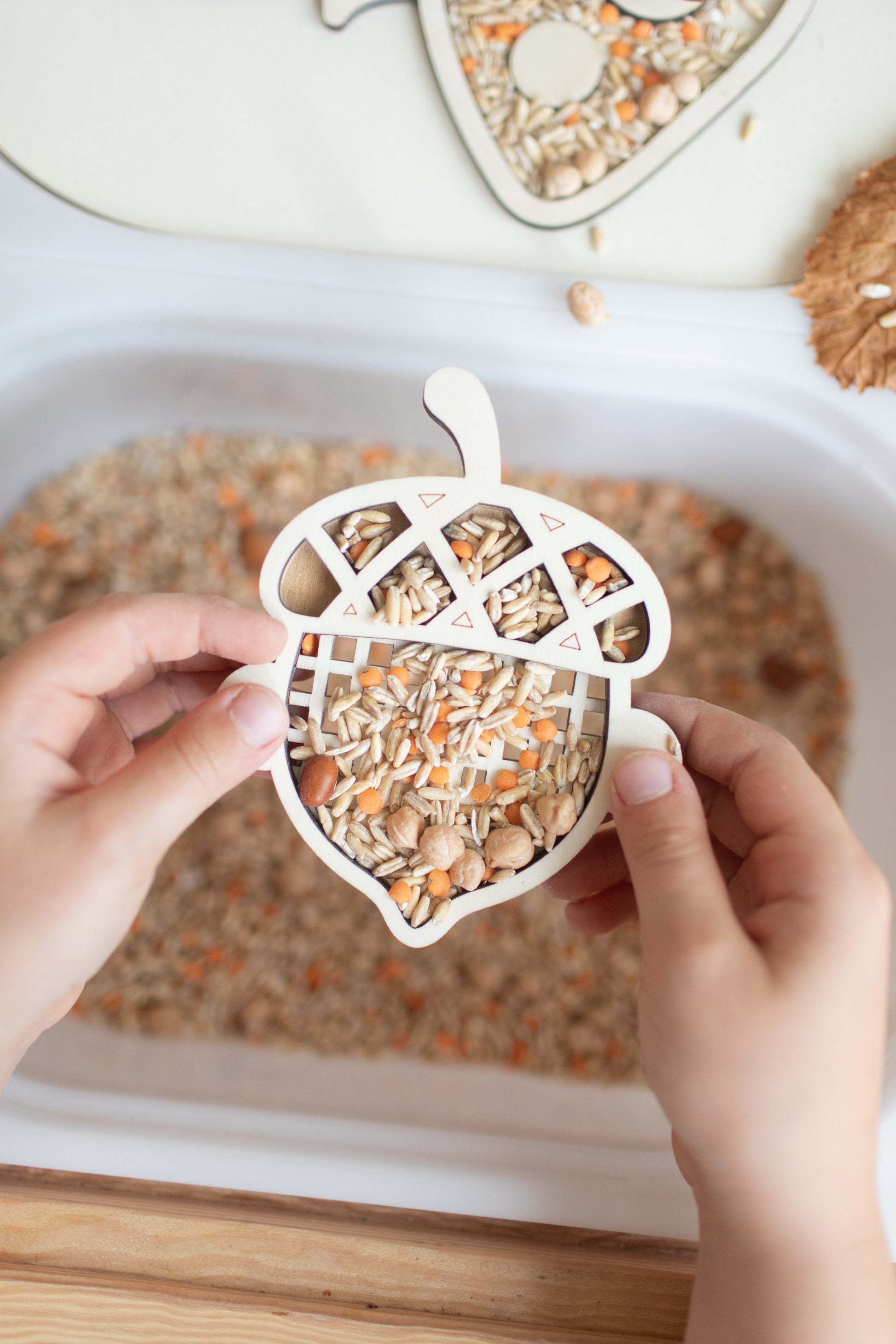 Deze speelse, houten zeefjes zijn perfect voor kleine handjes om te ontdekken, zeven en scheppen. Ideaal voor sensorisch spel. Elk zeefje is met zorg gemaakt en passend bij diverse thema’s.
