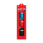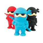 Met hun compacte formaat van 4,5 cm (1 ¾ inch) passen ze perfect in je etui of op je bureau. En omdat ze in een set van 3 kleuren komen – rood, blauw en zwart – heb je altijd een ninja in de juiste outfit paraat.