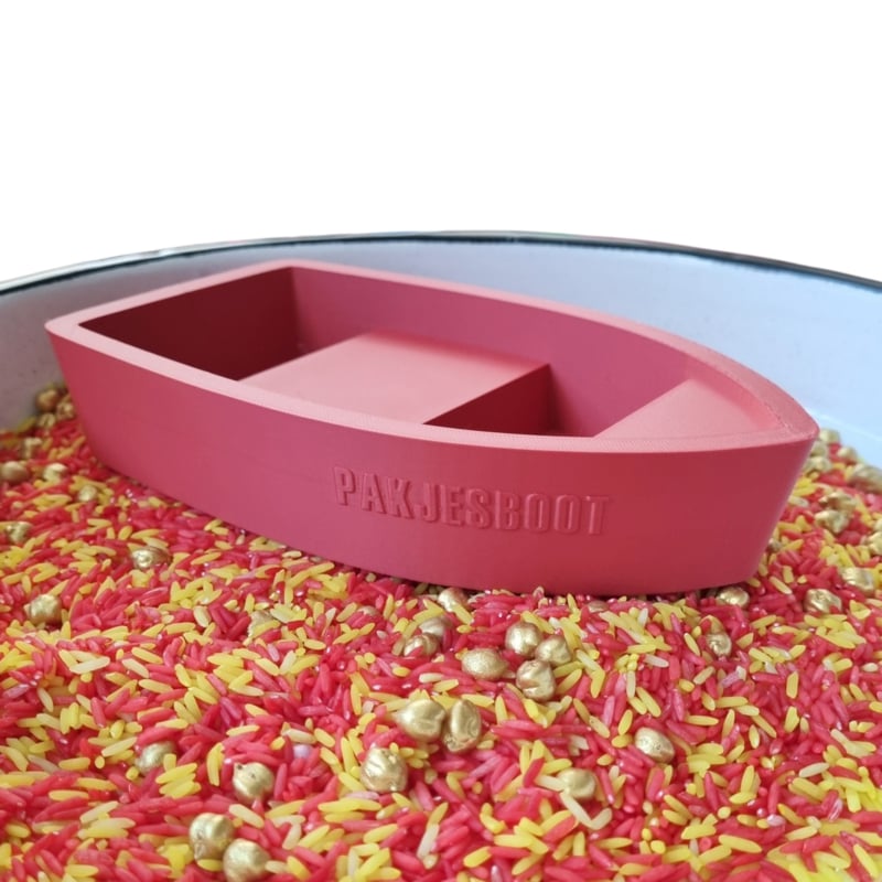 Breng de magie van Sinterklaas tot leven met deze vrolijke pakjesboot! Deze roodkleurige boot is 3D-geprint van duurzaam PLA materiaal, een biologisch afbreekbaar kunststof op basis van maiszetmeel. Perfect om te gebruiken bij thematische speelhoeken, als decoratie of om kleine cadeautjes en pepernoten in te presenteren.
