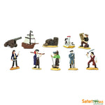 De Pirates TOOB van Safari Ltd bevat miniatuurfiguren met een piratenthema, waaronder piraten met kenmerkende attributen en een piratenschip. Het is ontworpen voor zowel spel als educatie, en is onderdeel van Safari Ltd's inzet om door middel van speelgoed educatieve waarde te bieden.