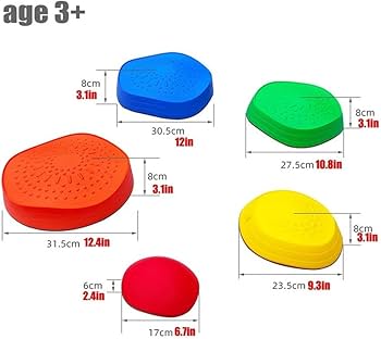 Naast het trainen van evenwicht en coördinatie, stimuleren de knoppen op de bovenkant de zintuiglijke waarneming. De rubberen rand aan de onderkant voorkomt wegglijden op gladde vloeren. Na het spelen kunnen de stenen makkelijk in elkaar gestapeld worden voor compacte opslag. Geschikt voor kinderen vanaf 3 jaar en belastbaar tot maximaal 50 kg.