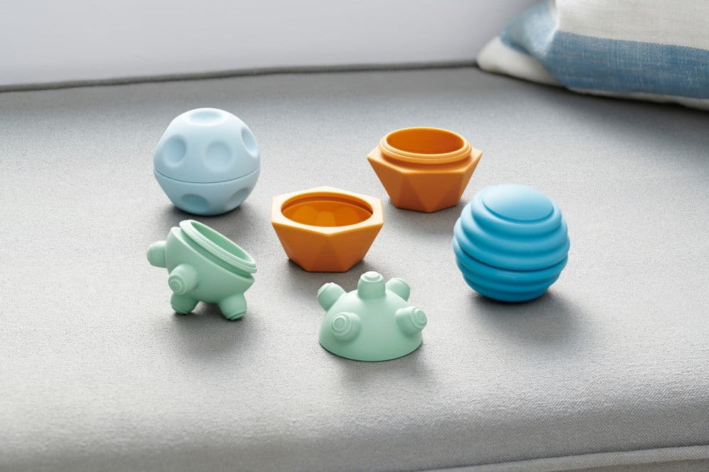 Met verschillende tactiele texturen, ribbels, patronen en bobbels, kunnen deze sensorische ballen worden gedraaid om open te springen en gevuld met gedroogde pulsen of kralen om natuurlijke sensorische shakers te creëren.